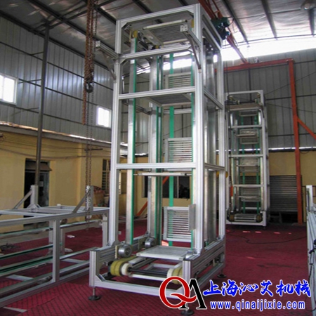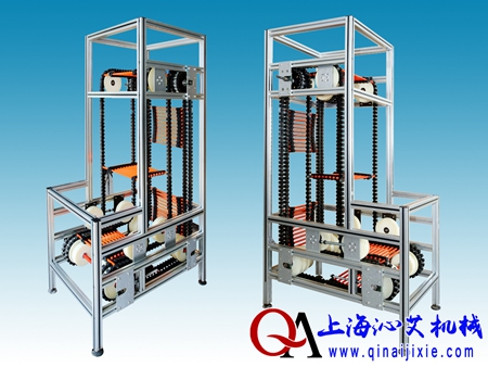 連續(xù)升降機(jī)工作時(shí)擱板的回程不占用工作節(jié)拍,輸送效率高,且不受輸送高度的影響。